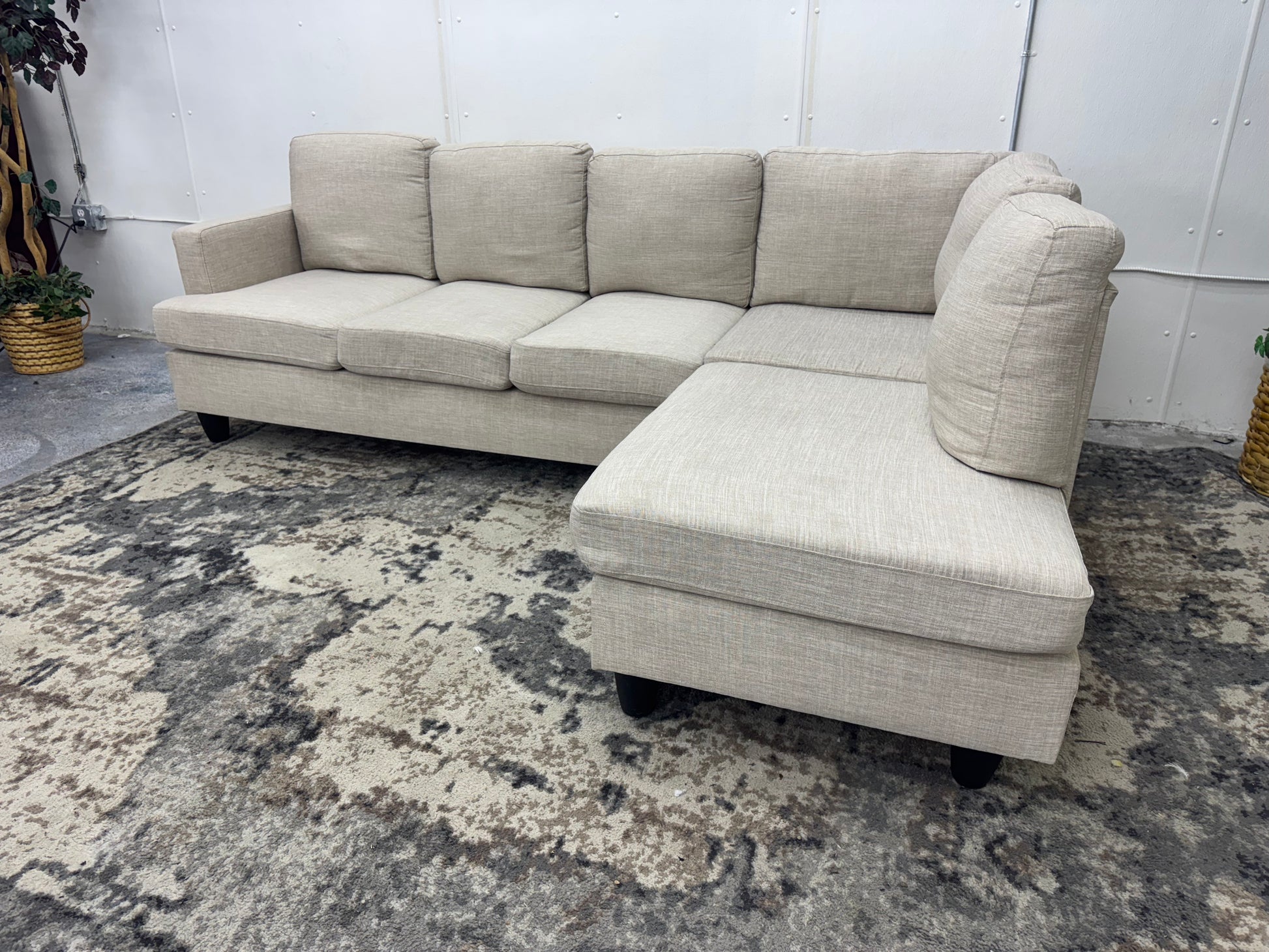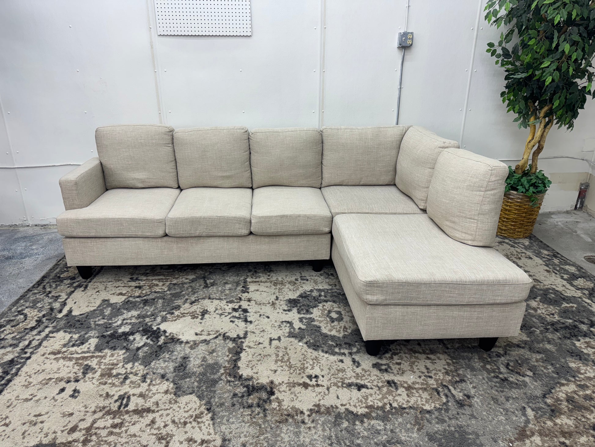 This beige L-shaped sectional couch is the perfect blend of comfort and simplicity. Its soft fabric and supportive cushions make it an ideal everyday sofa for relaxing, hosting friends, or creating a cozy lounge area. The neutral beige tone pairs effortlessly with any décor style.