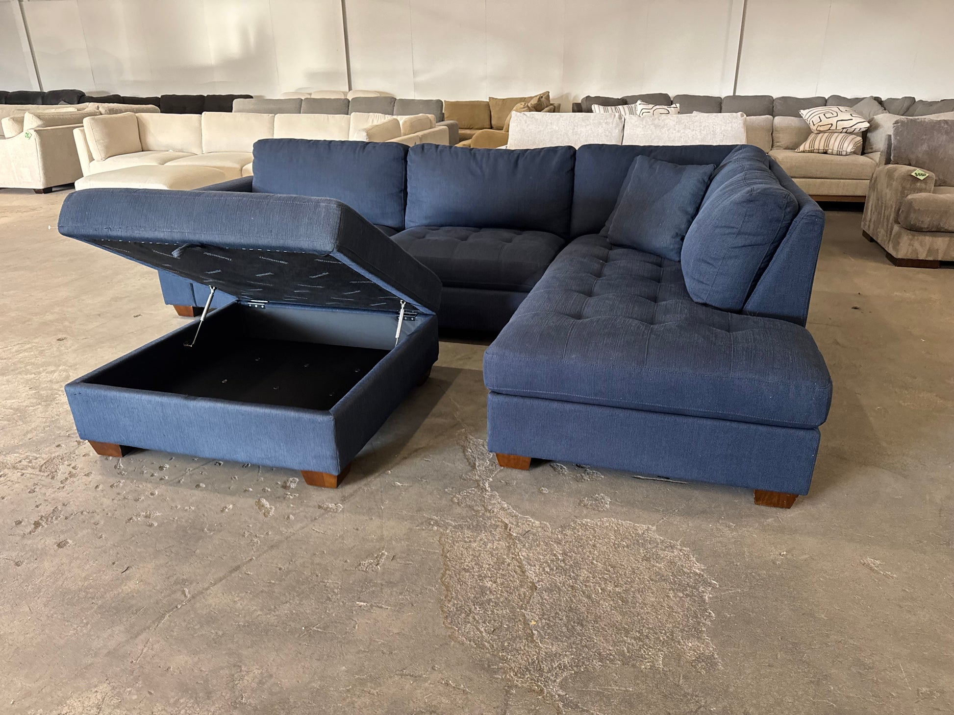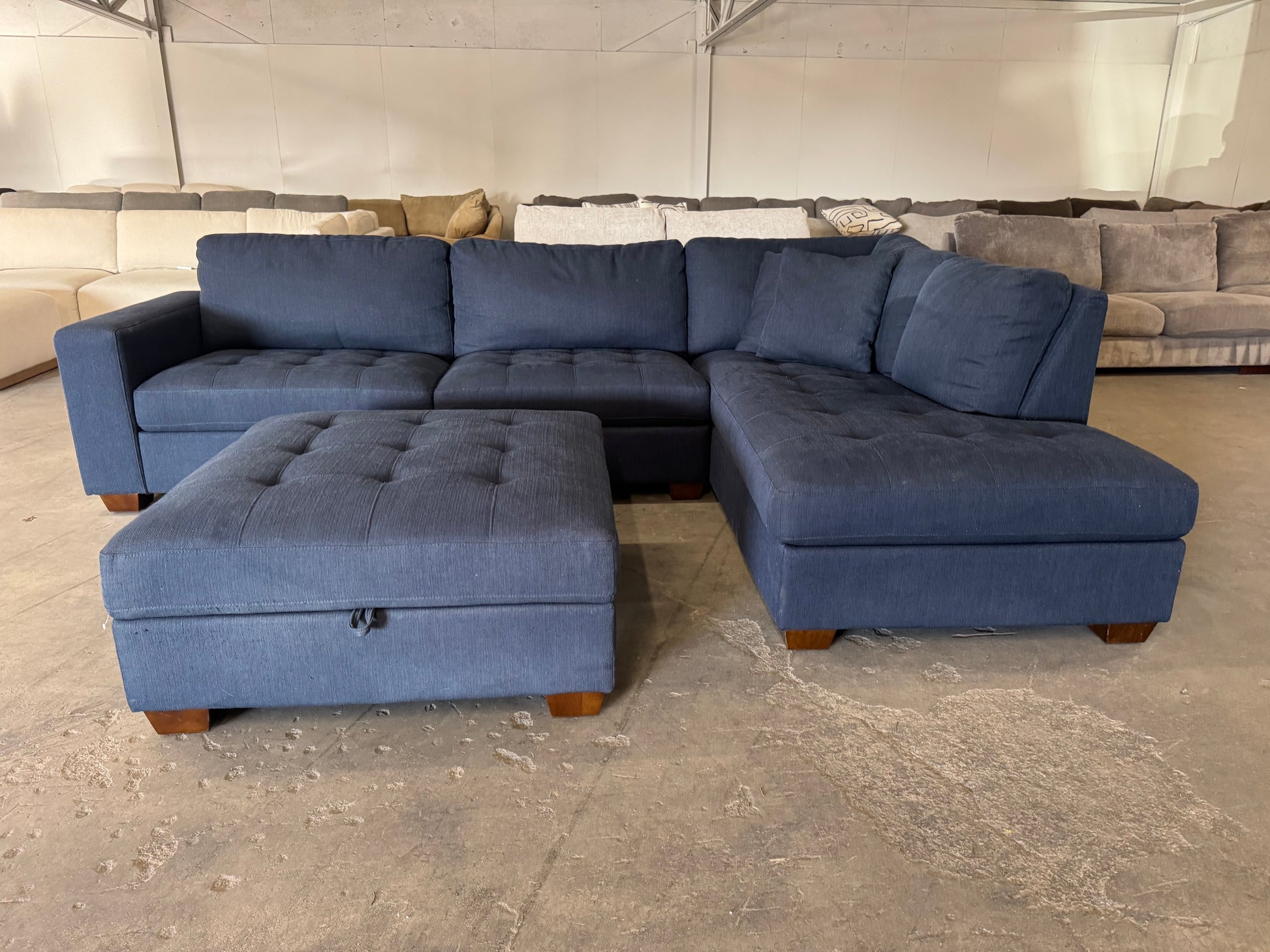 Blue L Shape Sectional with Storage Ottoman