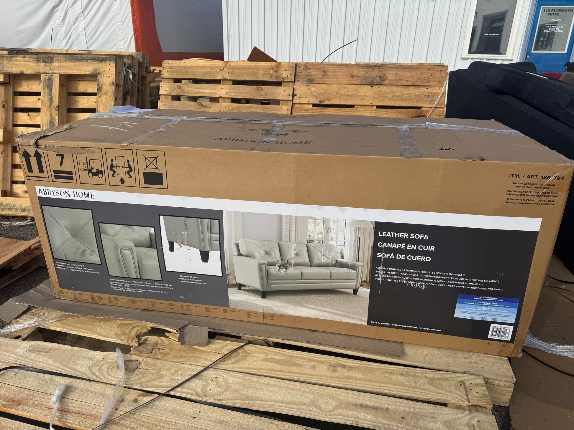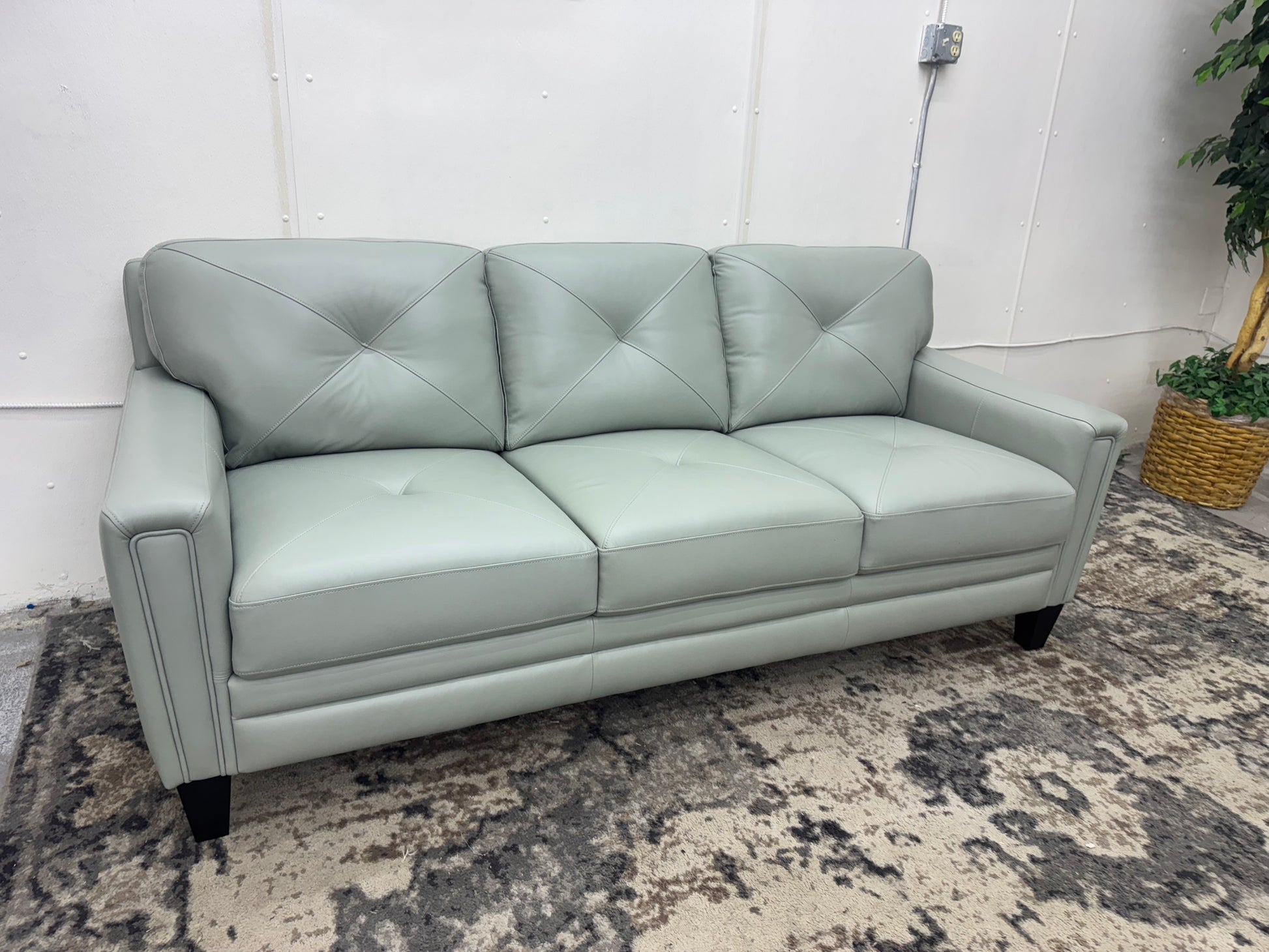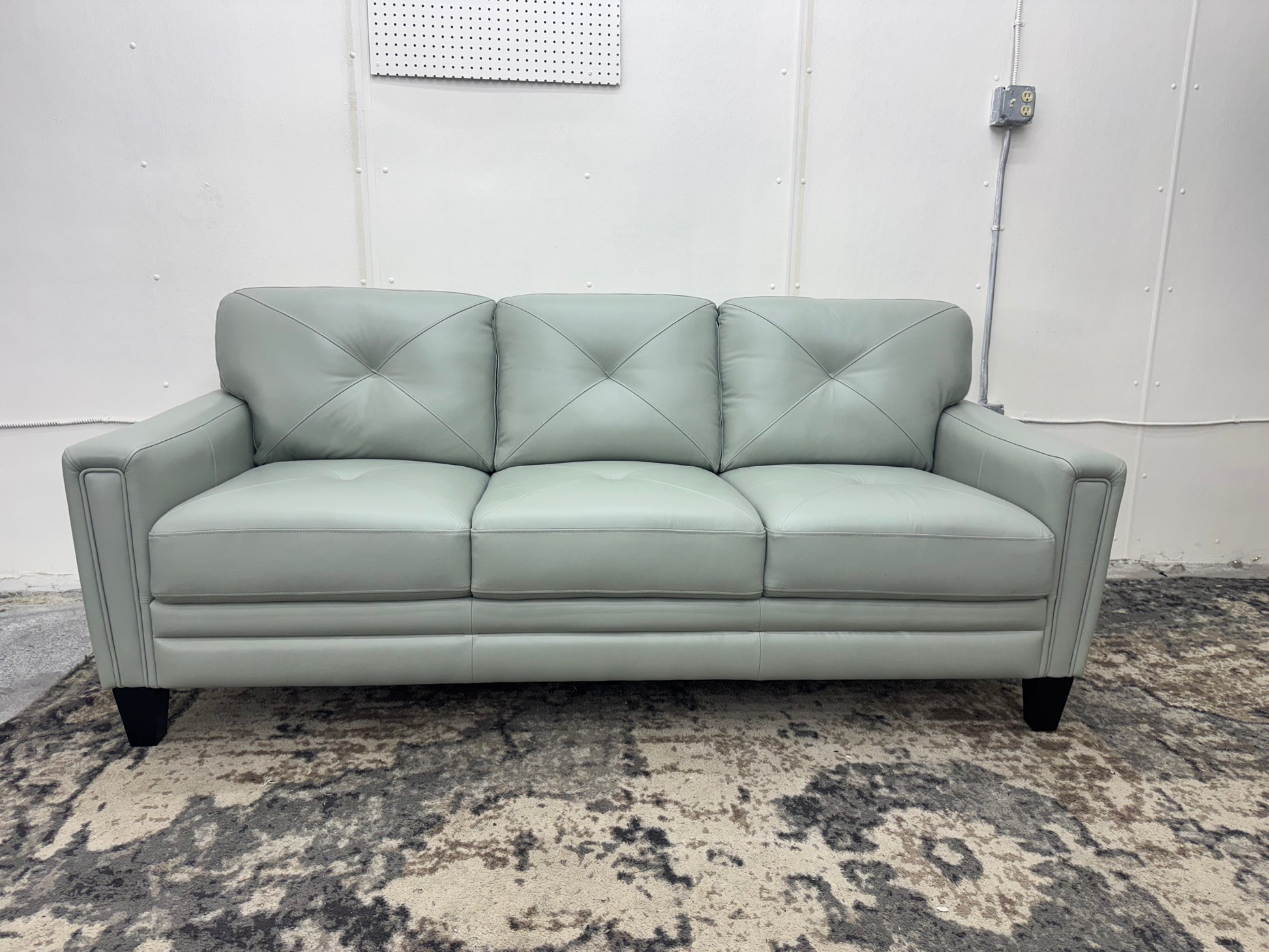 This brand new Abbyson teal leather sofa is a stunning upgrade for any living room. Abbyson is known for its high-quality craftsmanship and durable materials, and this piece delivers both comfort and style. The genuine leather upholstery has a rich teal tone that adds a bold, modern touch without overpowering the space. With supportive cushions and a sleek, structured silhouette, it’s a beautiful statement sofa that pairs easily with mid-century, contemporary, or modern décor.