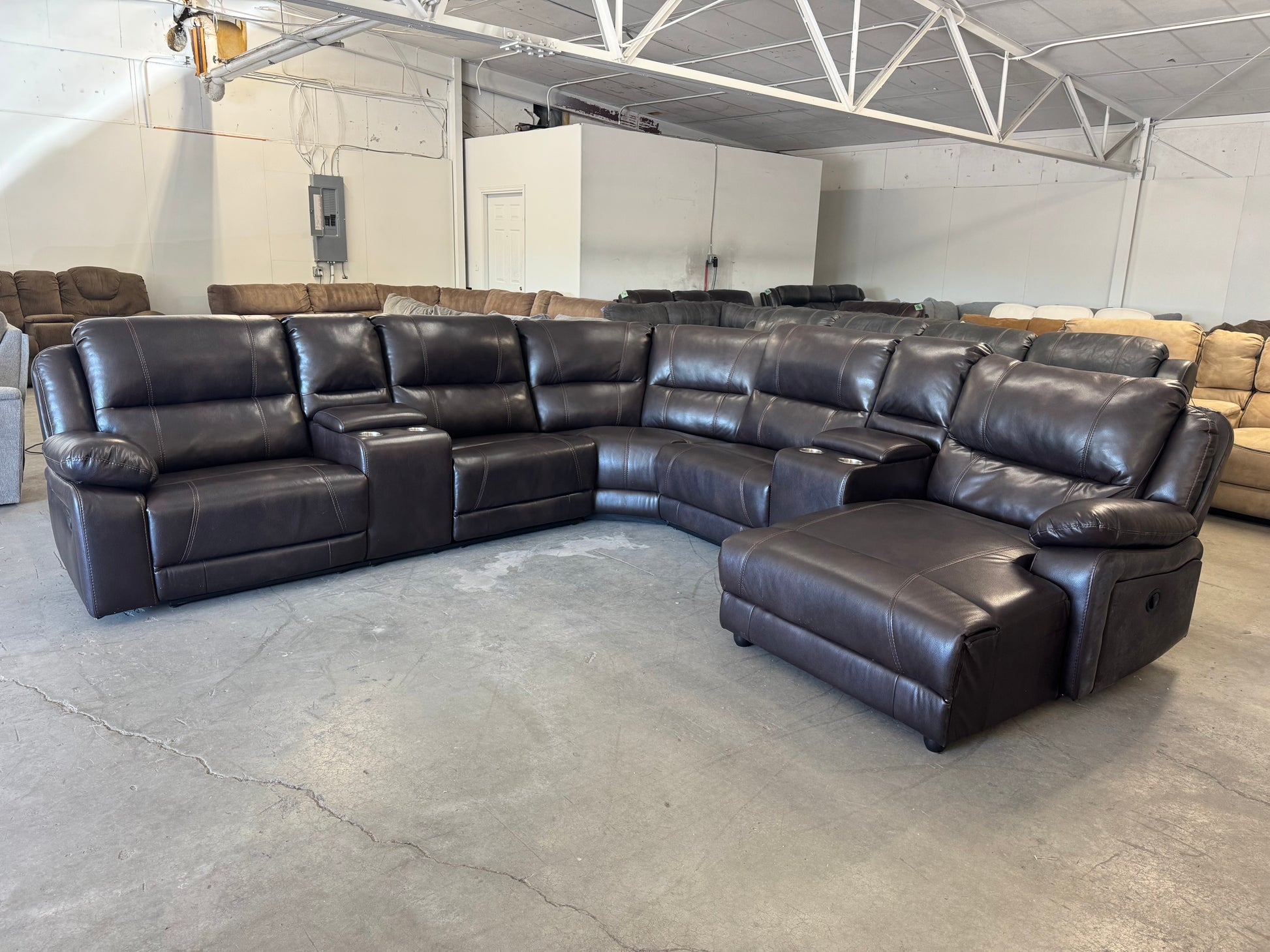 Brown Sectional with Dual Recliners and Reclining Chaise
