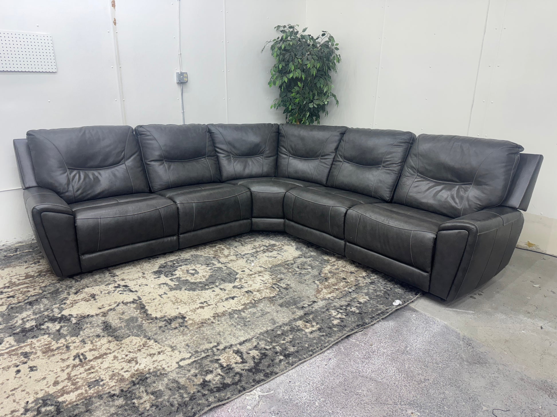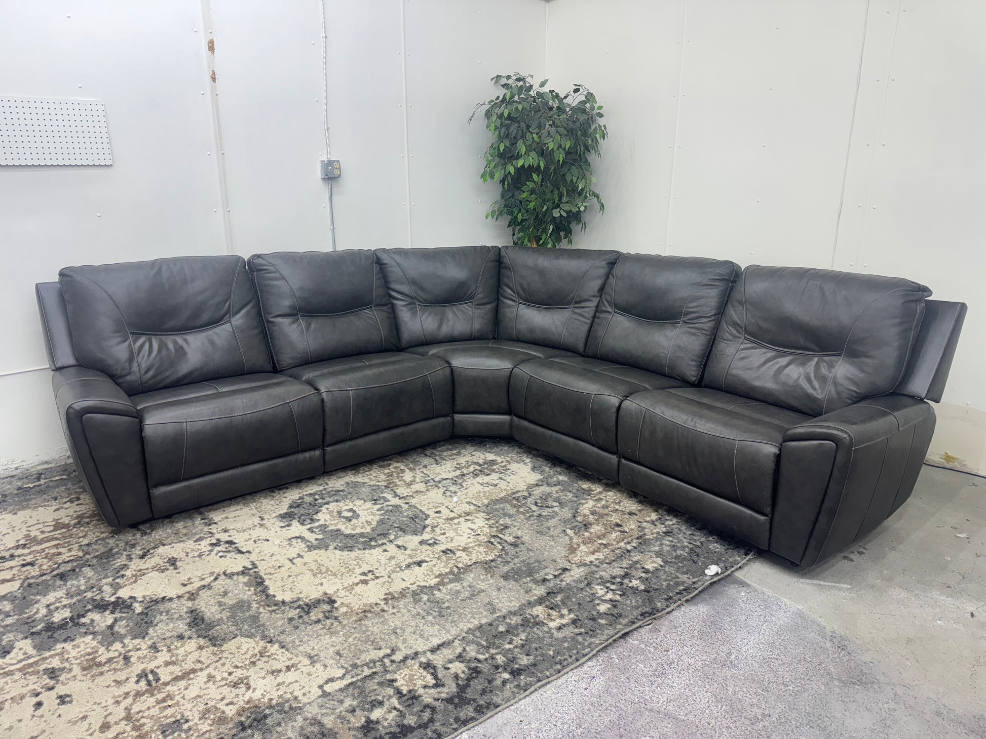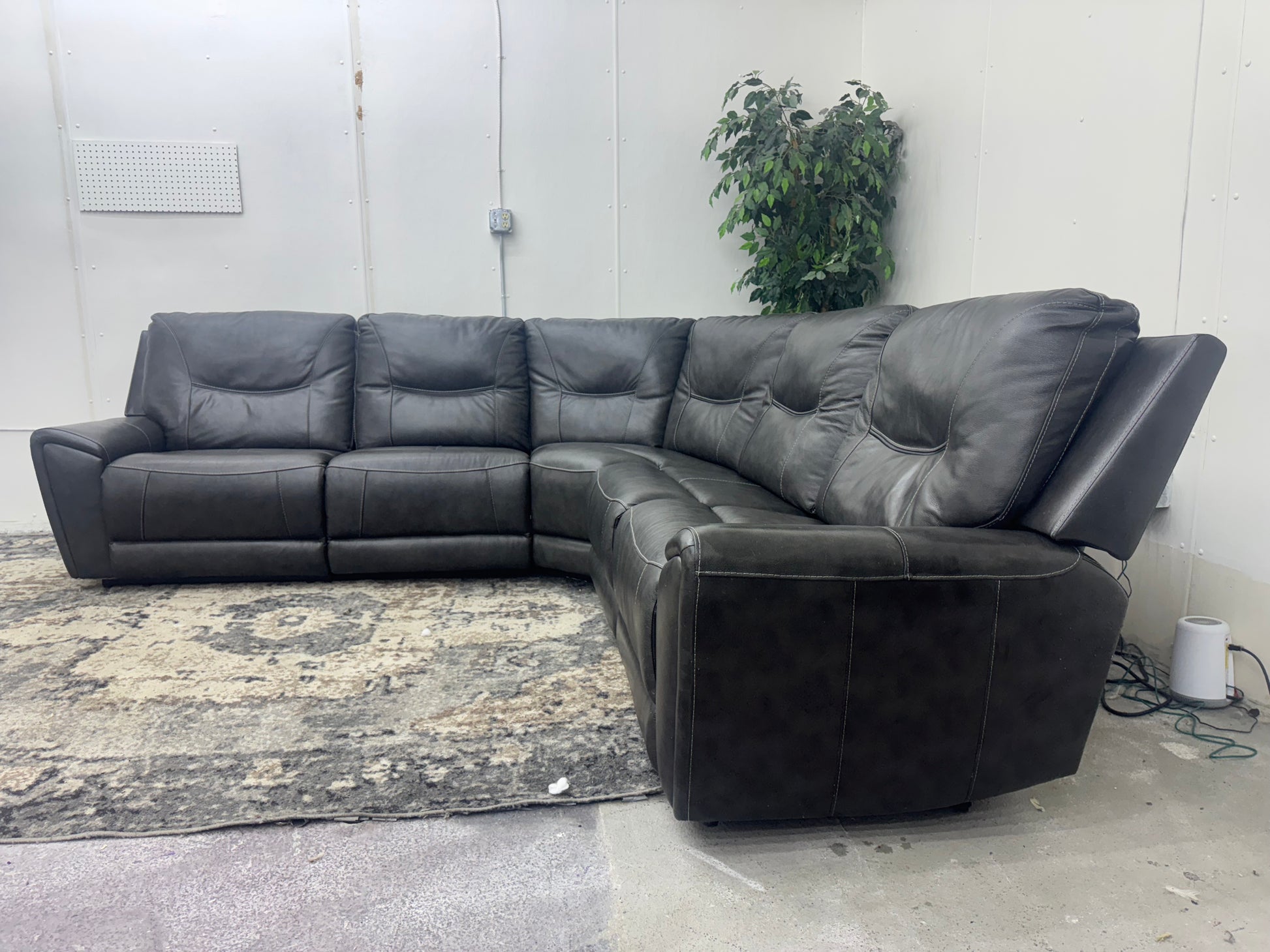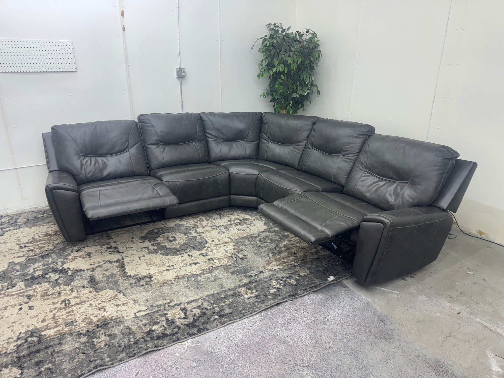 Charcoal Gray 5-Piece Modular Leather Sectional w/ Dual Manual Recliners