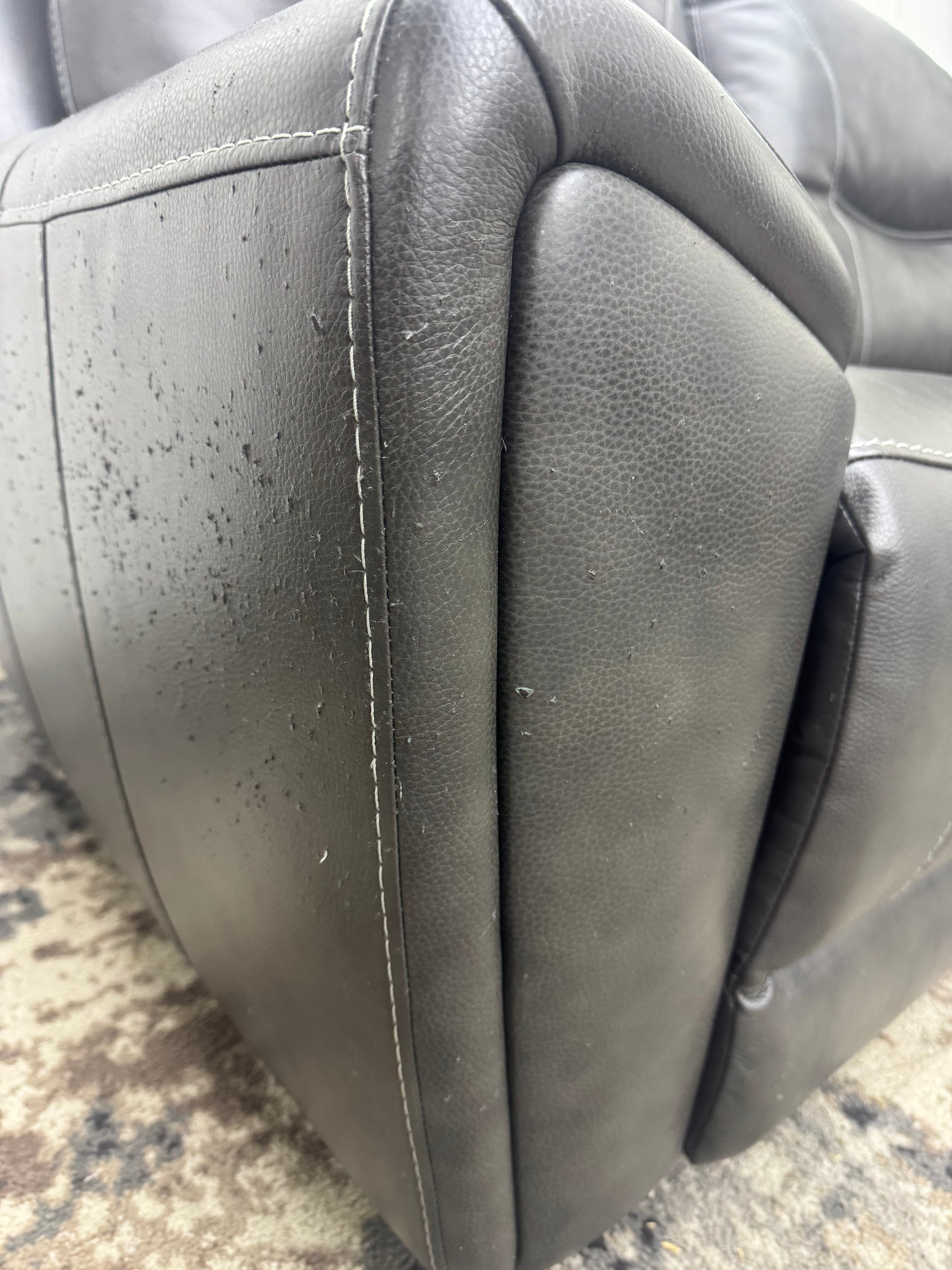 This charcoal gray 5-piece modular leather sectional features two built-in manual recliners, deep cushioned seats, and a flexible layout that can be adjusted to fit your space. Perfect for movie nights, large living rooms, or anyone who wants comfort AND durability.
