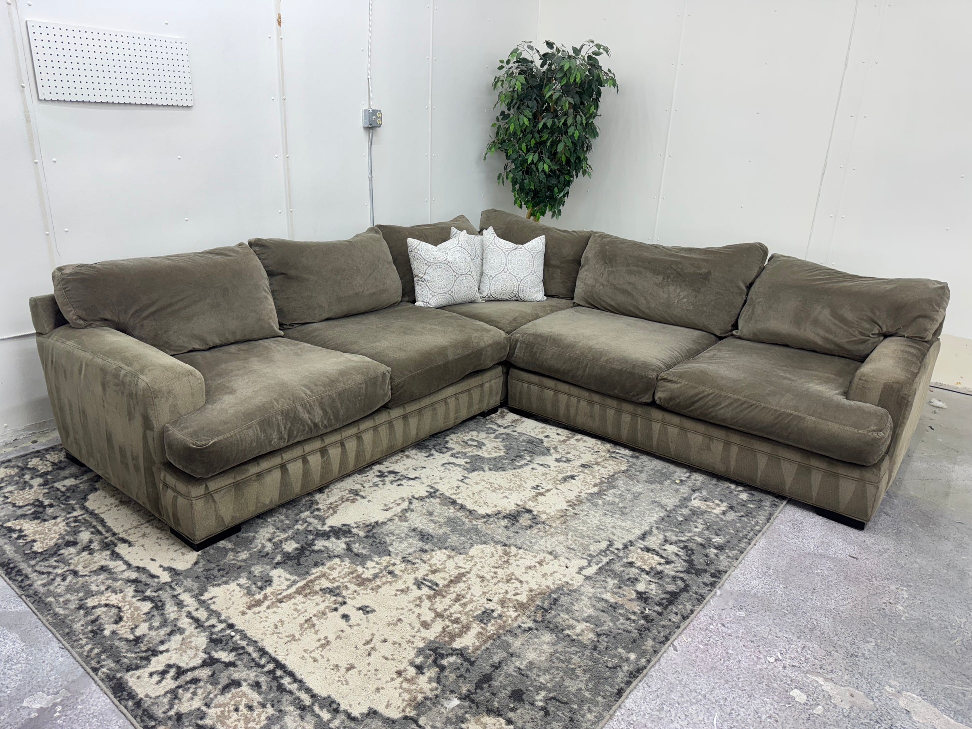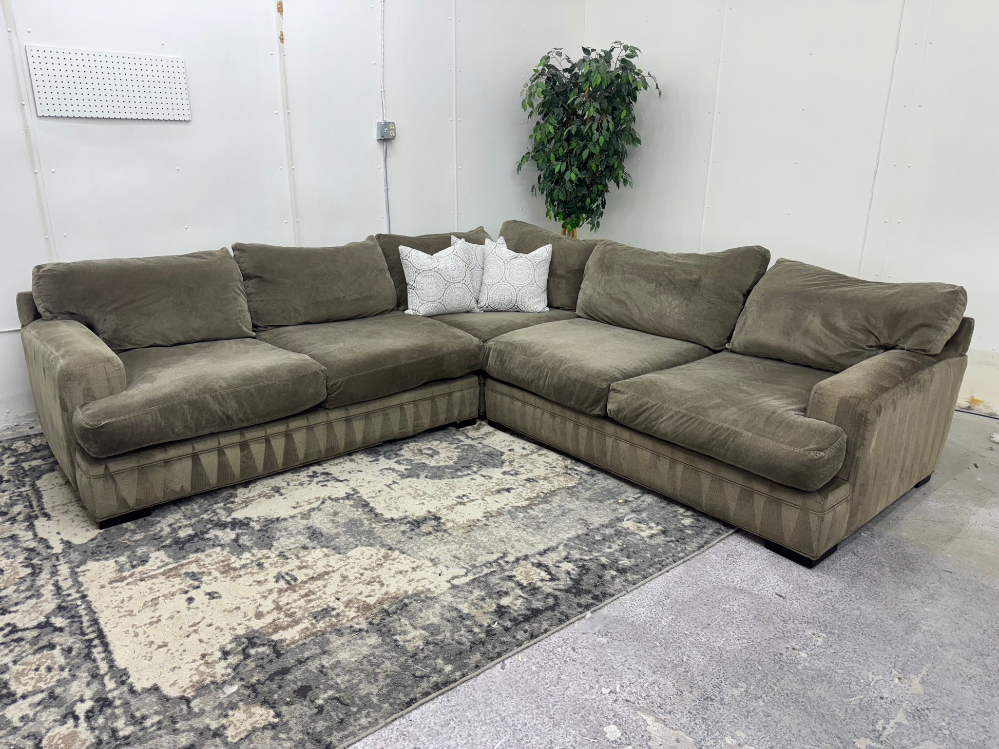 Gorgeous Taupe Deep-Seated Cindy Crawford Down-Filled Sectional Sofa