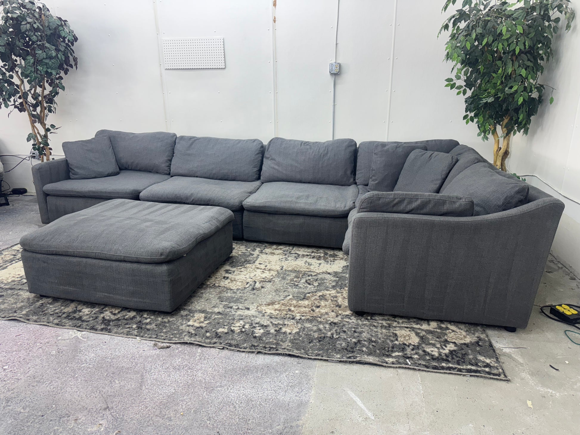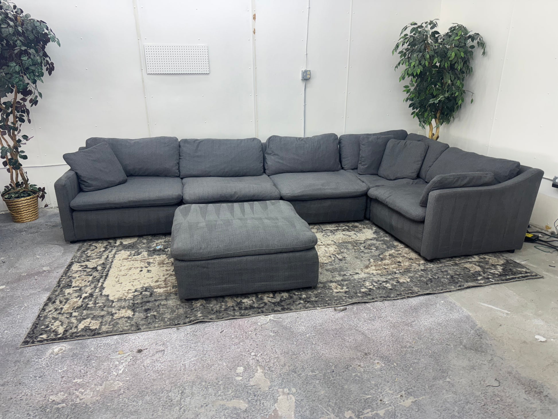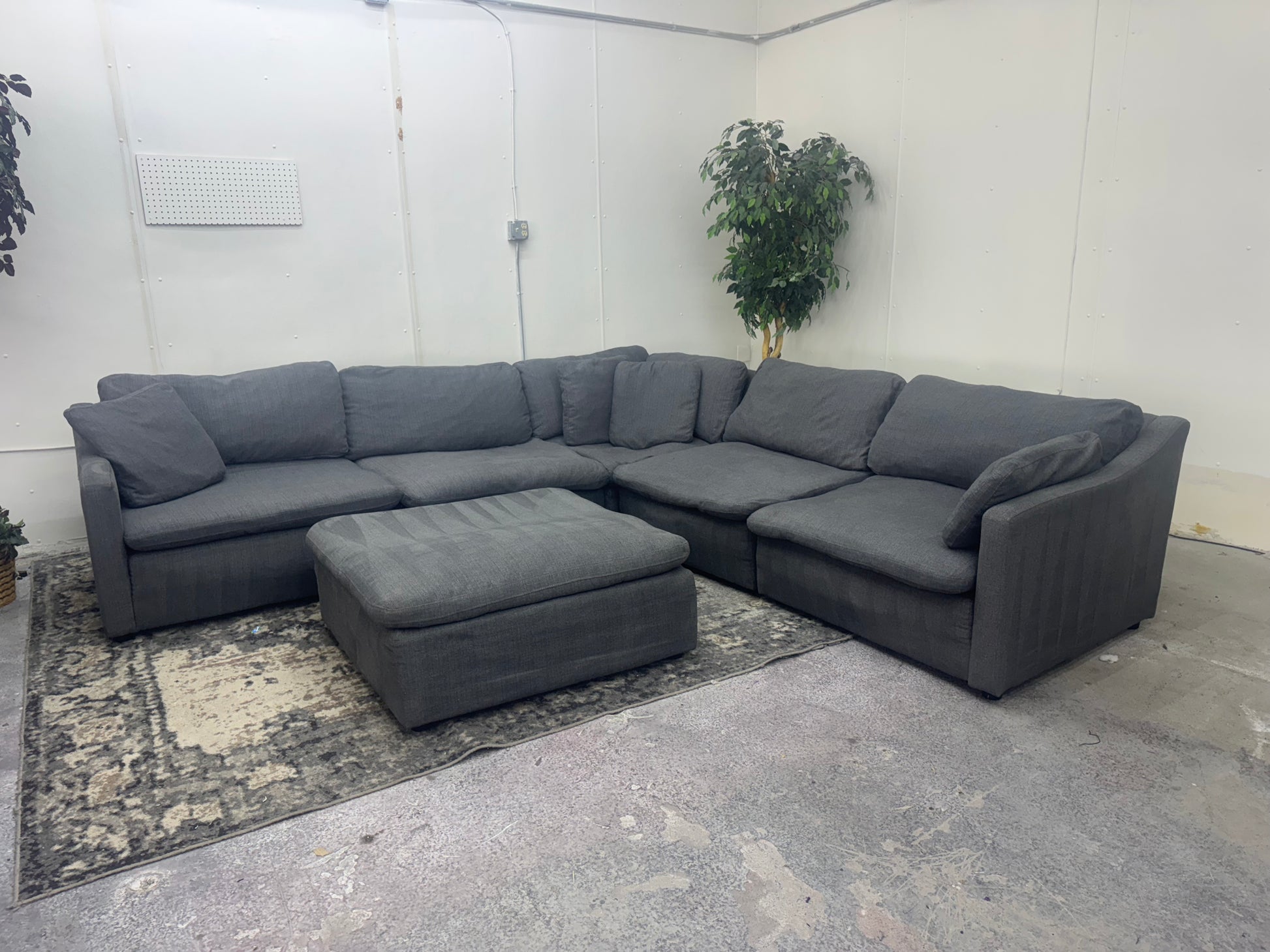 This gray 6-piece modular cloud sectional is the perfect blend of comfort, flexibility, and modern style. With deep plush cushions, oversized seating, and a fully modular layout, you can design it to fit any room. Comes with a matching oversized ottoman to complete the set.