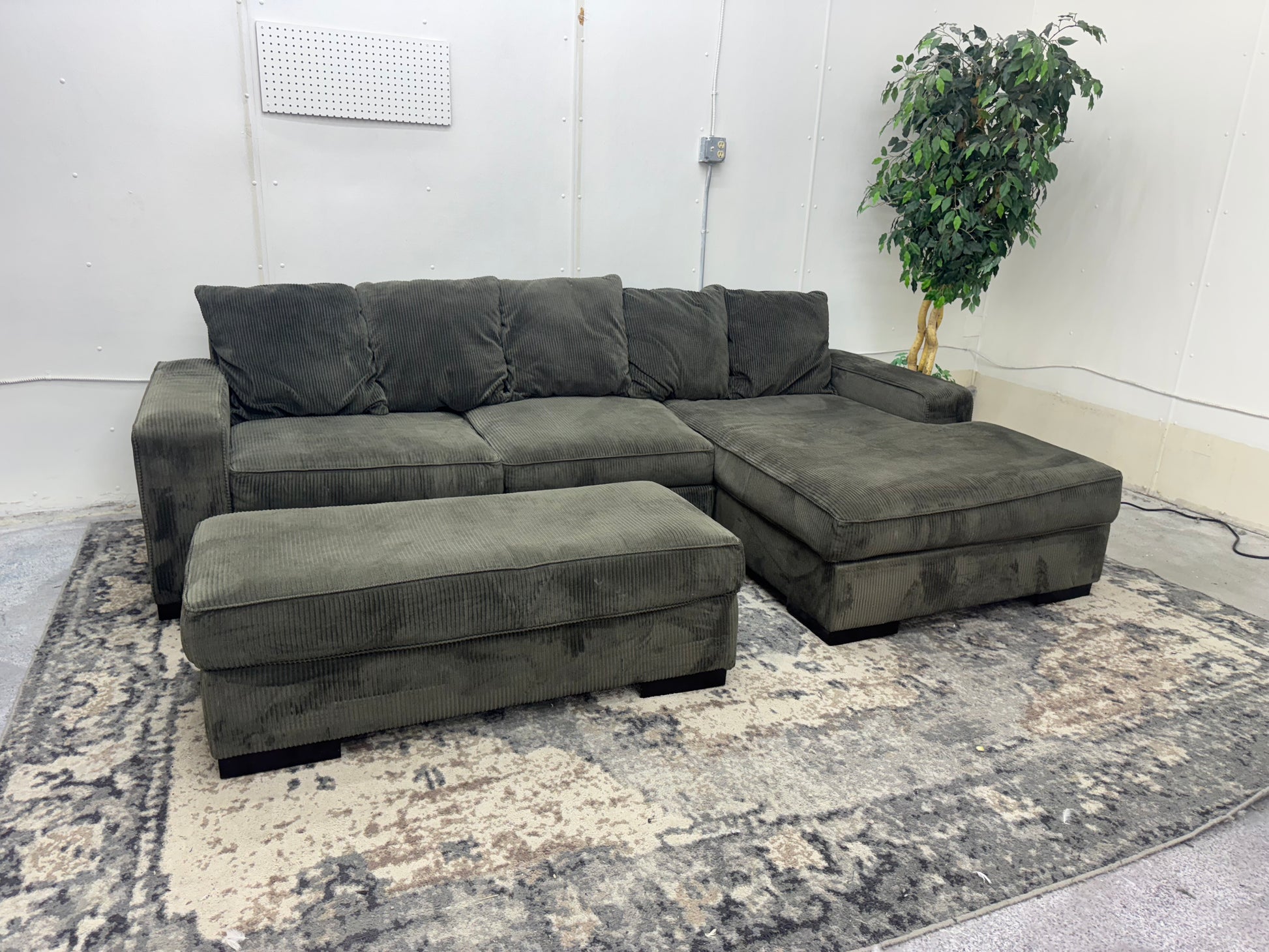 Gray L Shape Corduroy Sectional with Ottoman