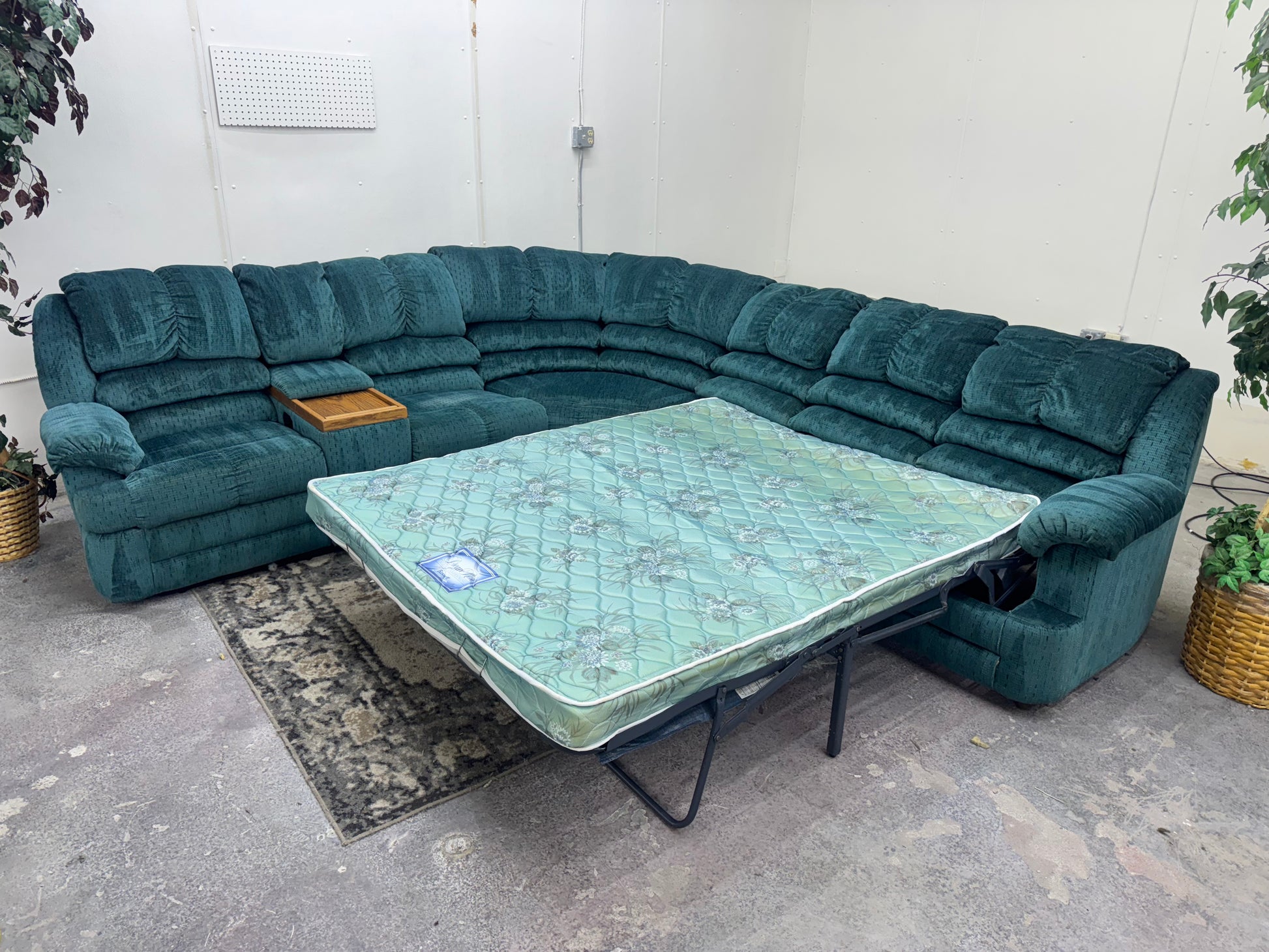 Green Bassett Reclining Sectional with Sleeper & Built-In Console