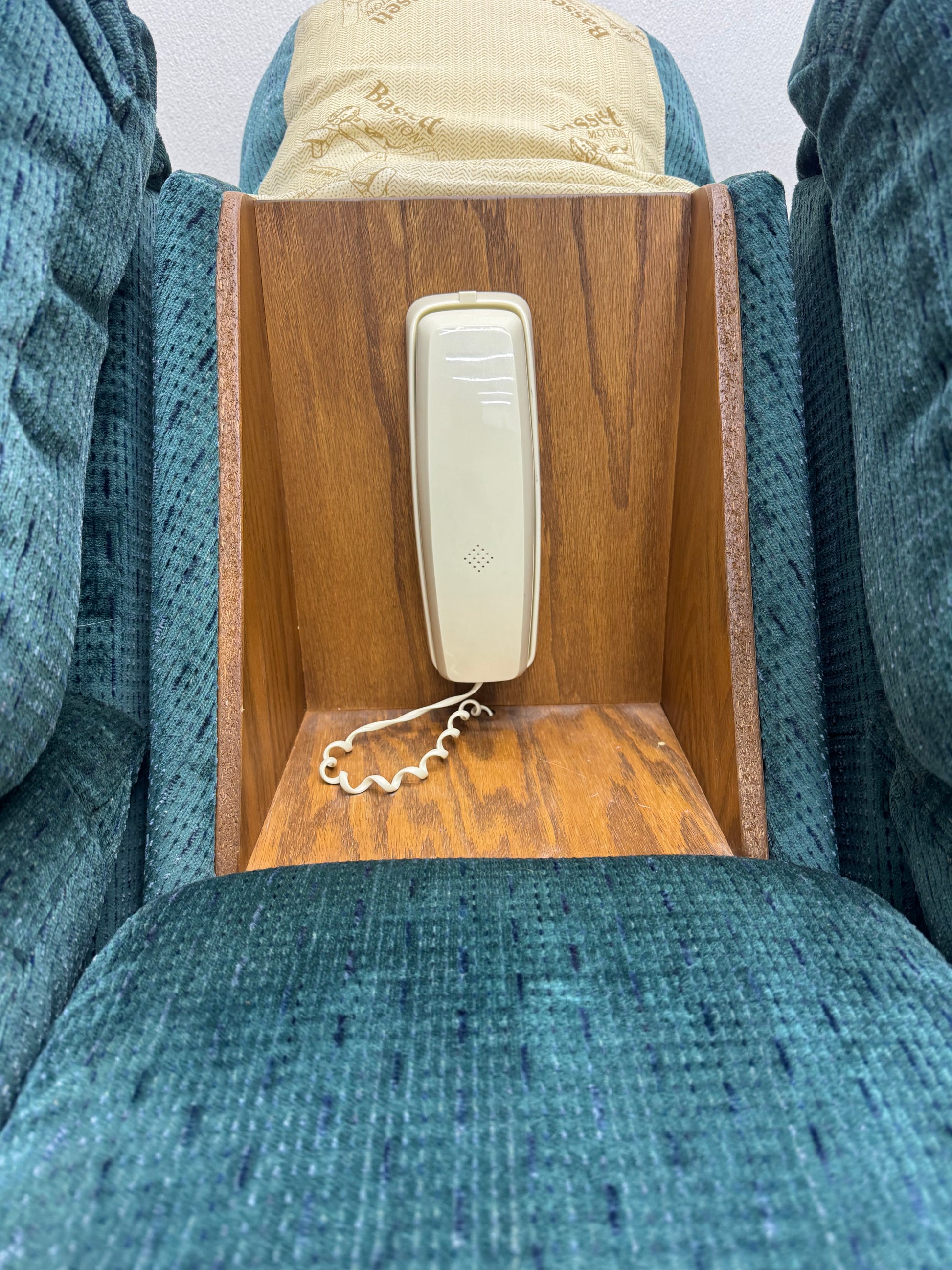This is a seriously unique and comfortable Bassett sectional that does it all. Upholstered in a rich green fabric, this oversized sectional features dual manual recliners, a full sleeper sofa, and a built-in center console with cupholders ā plus a built-in landline phone (yes, really š). Perfect for movie nights, guests staying over, or anyone who wants maximum seating and functionality in one piece. Bassett is known for quality construction and comfort, and this sectional delivers both in a big way.
