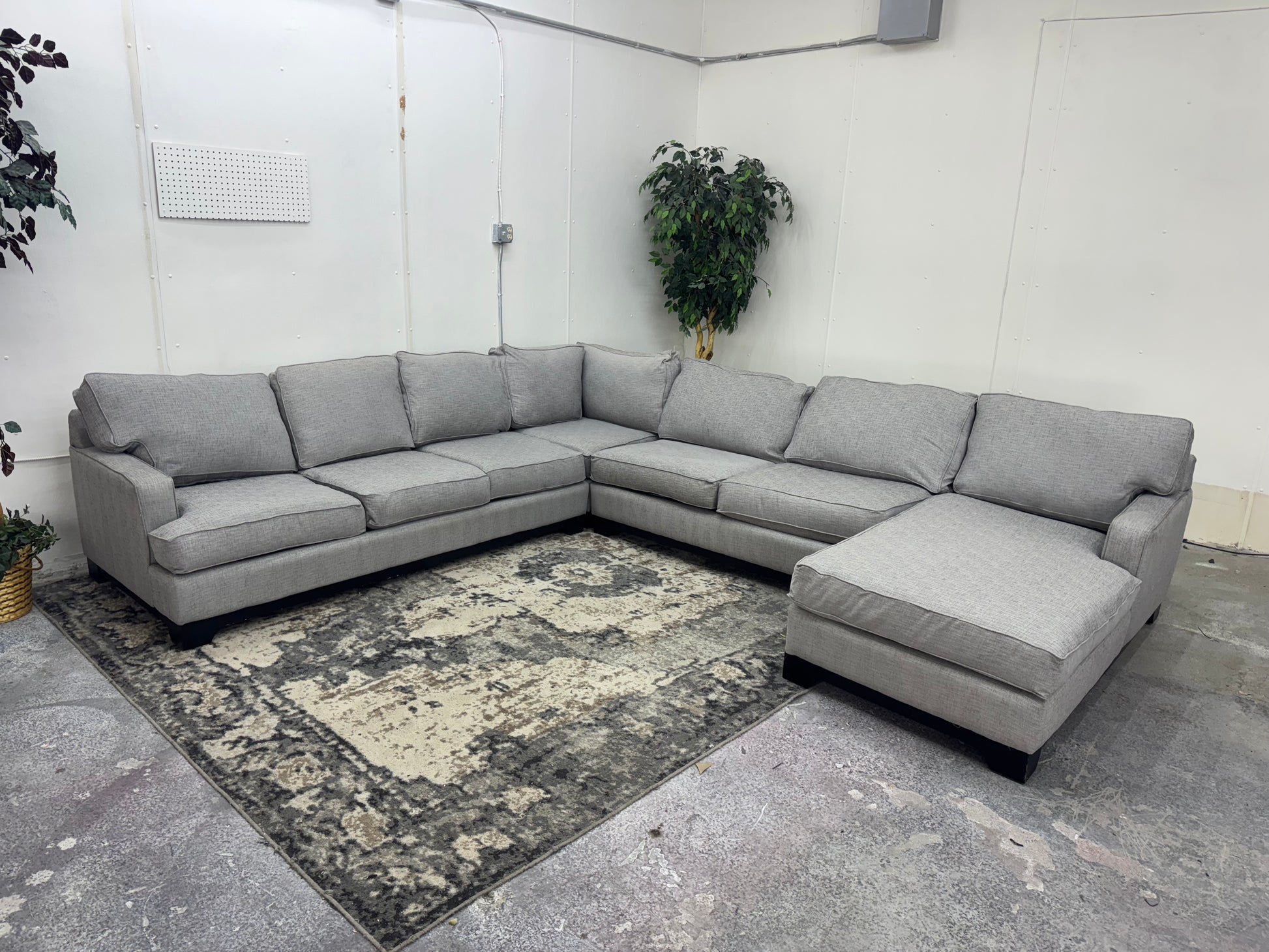 This huge gray U-shaped sectional with a chaise lounge offers the ultimate combination of space, comfort, and modern style. Perfect for large living rooms or family spaces, it features deep, plush cushions and a versatile design that makes it ideal for both entertaining and relaxing.
