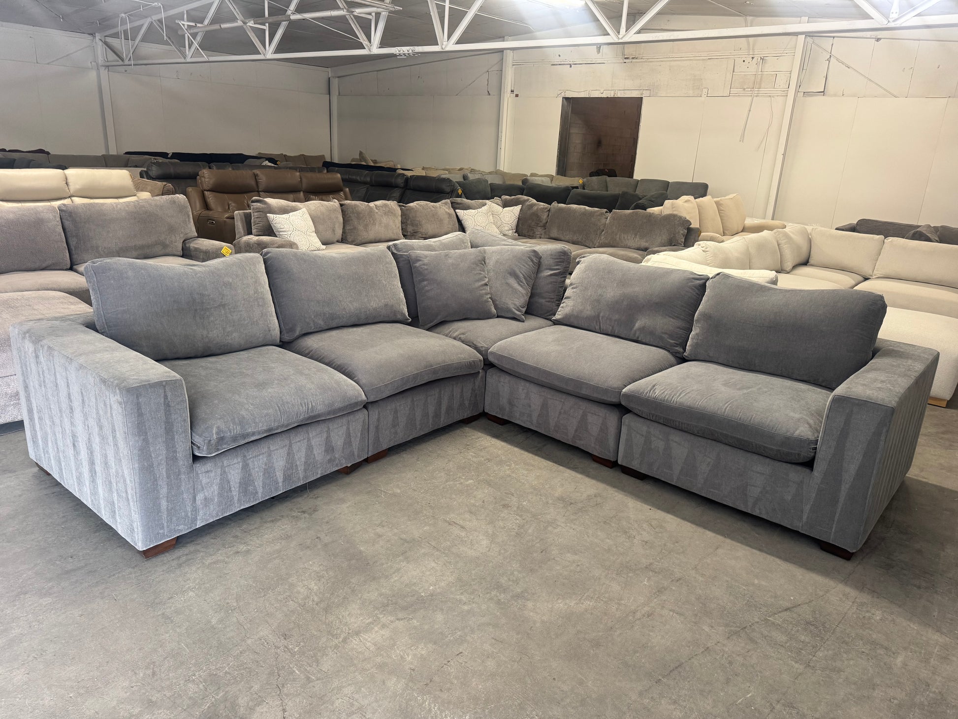 This like-new 5 piece modular cloud sectional is all about oversized comfort and flexibility. With its deep seats, plush cushions, and modern low-profile silhouette, it gives you that highly sought-after “cloud couch” feel without the retail price tag.