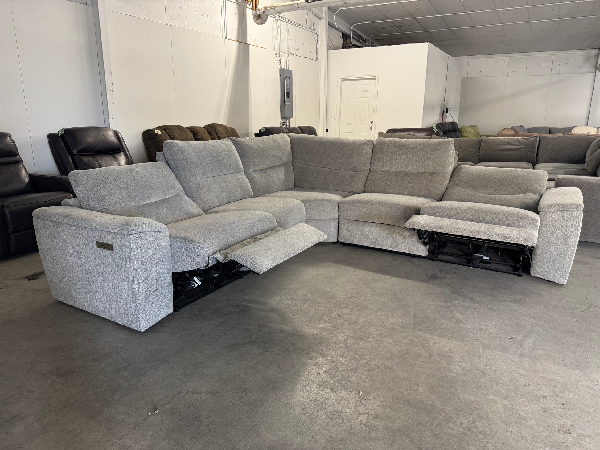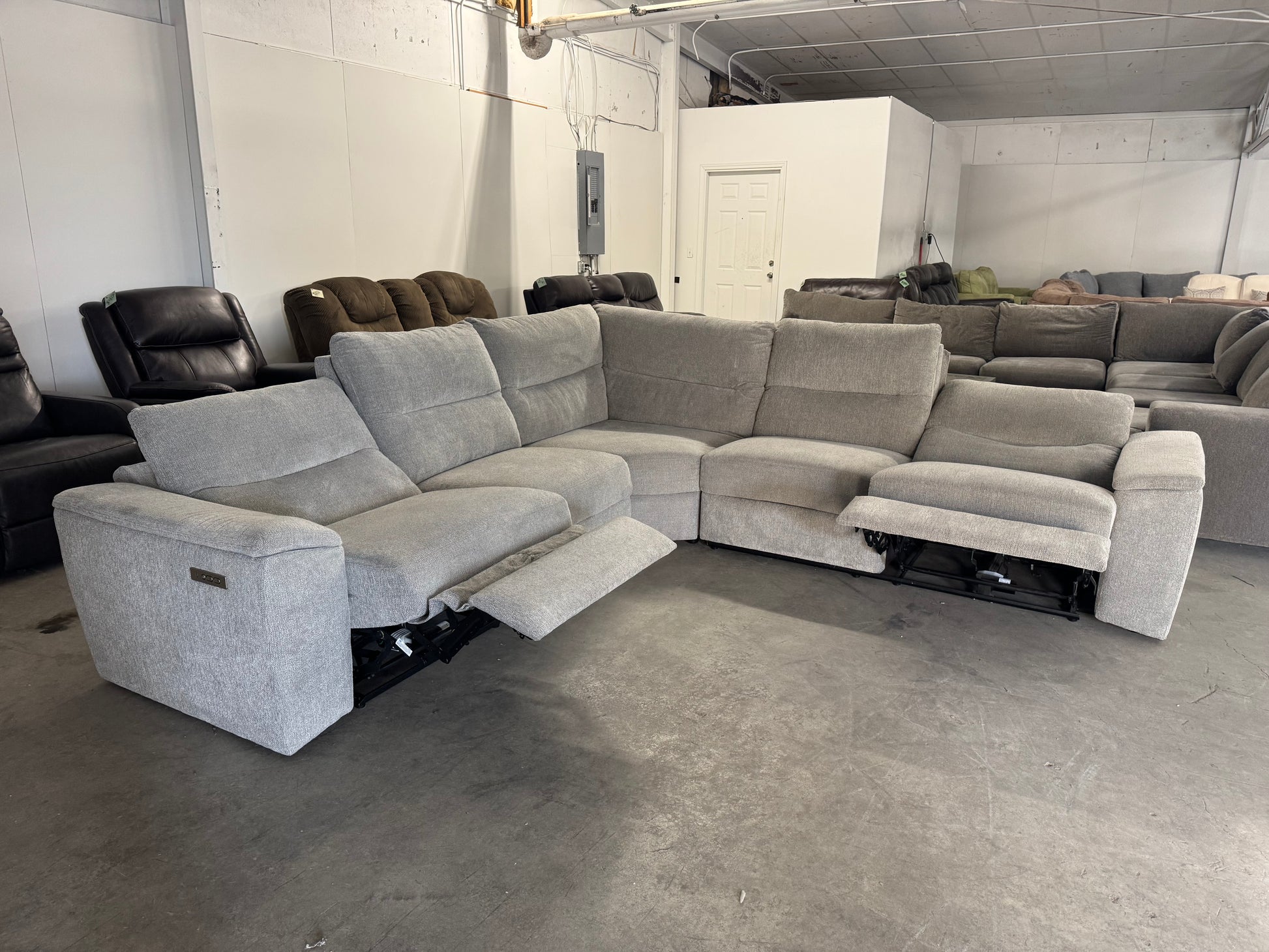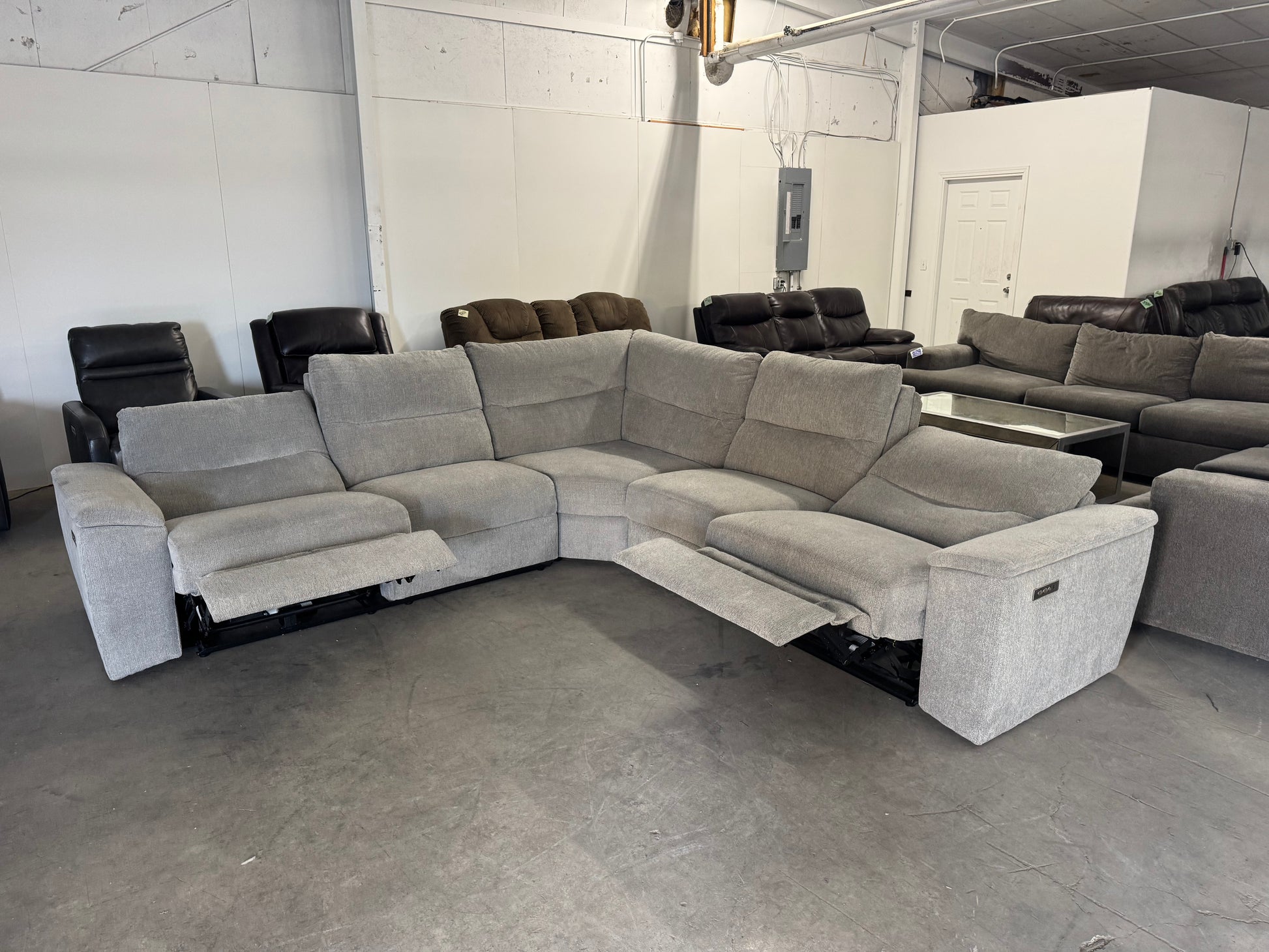 LIKE NEW Gray Fabric Reclining Sectional Sofa with 2 Electric Recliners