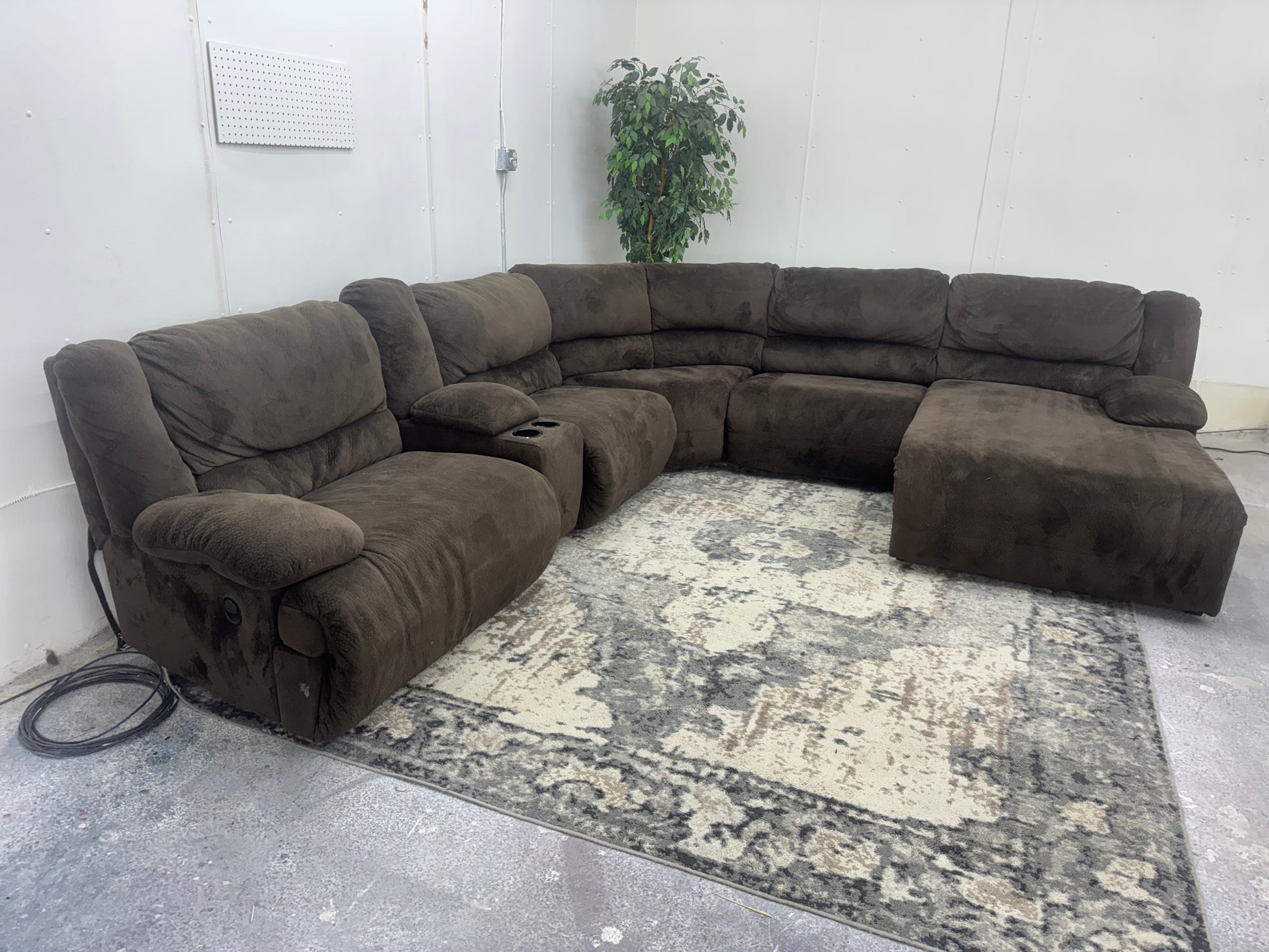Plush Brown Modular Reclining Sectional with Reclining Chaise