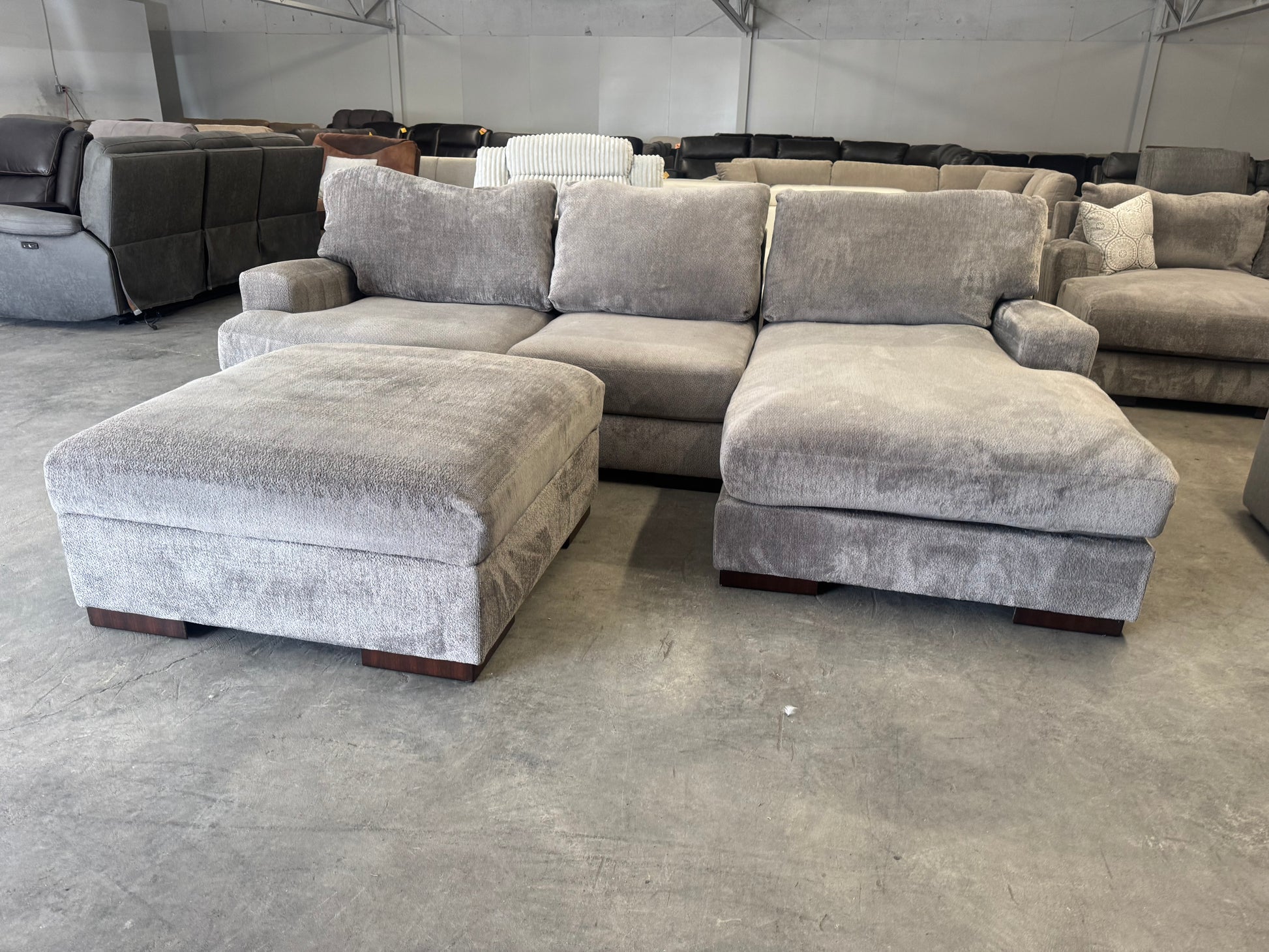 Plush Gray L-Shape Sectional with Storage Ottoman