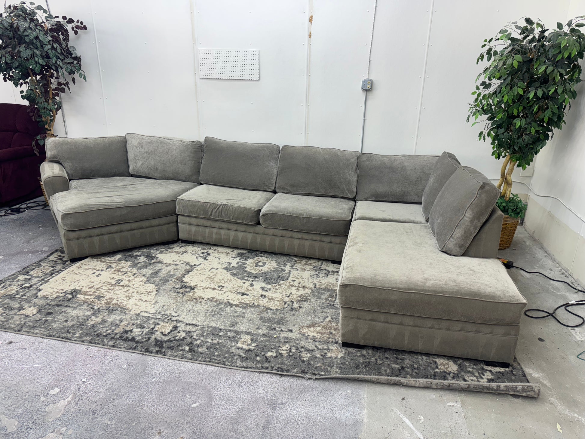 This gray L-shaped sectional with a cuddler corner is the perfect blend of space, style, and comfort. Its extra-wide cuddle corner gives you plenty of room to stretch out, relax, or cozy up with the family. The neutral gray fabric complements any décor, while the modern silhouette makes it a stylish centerpiece for your living room.