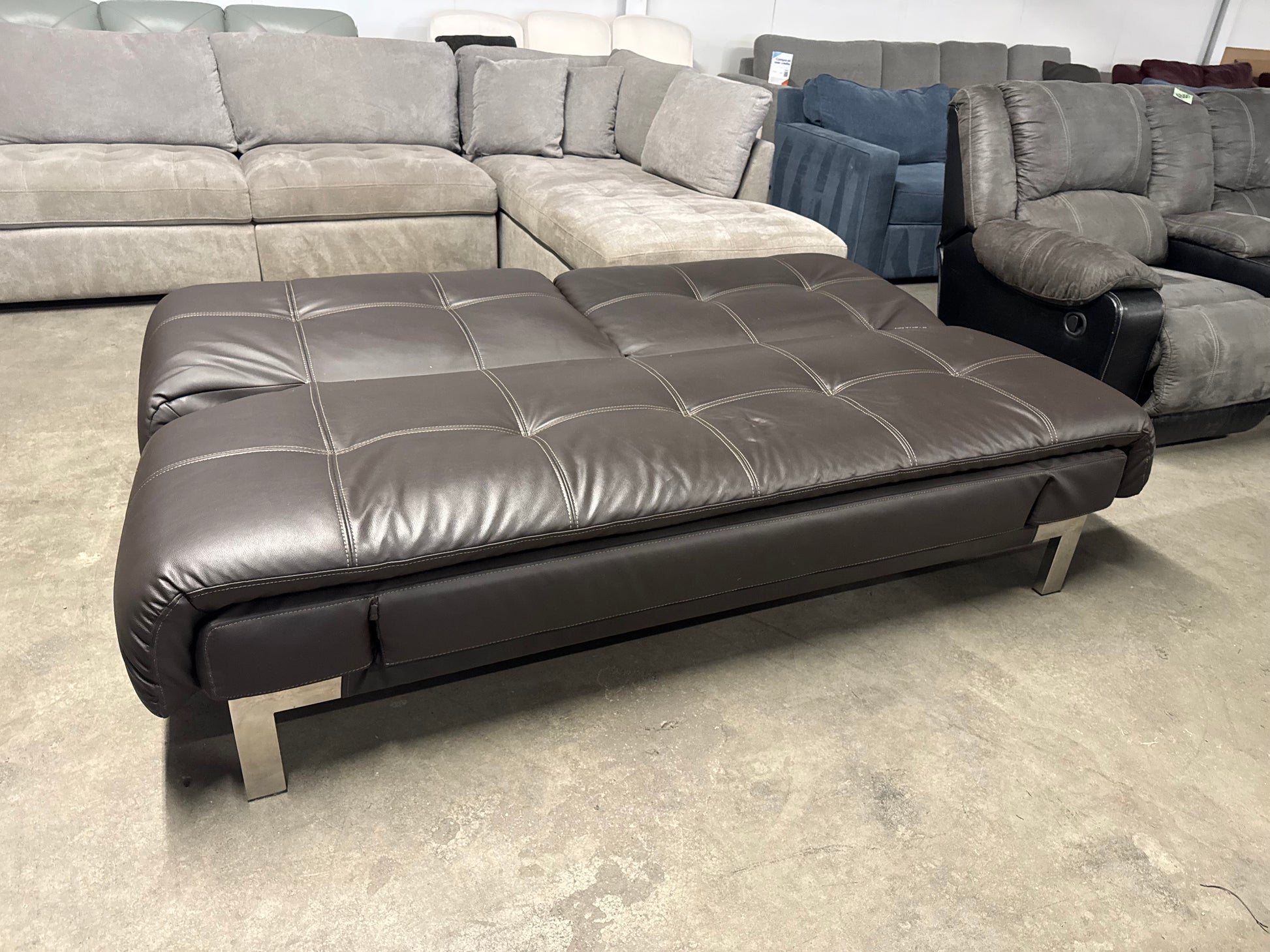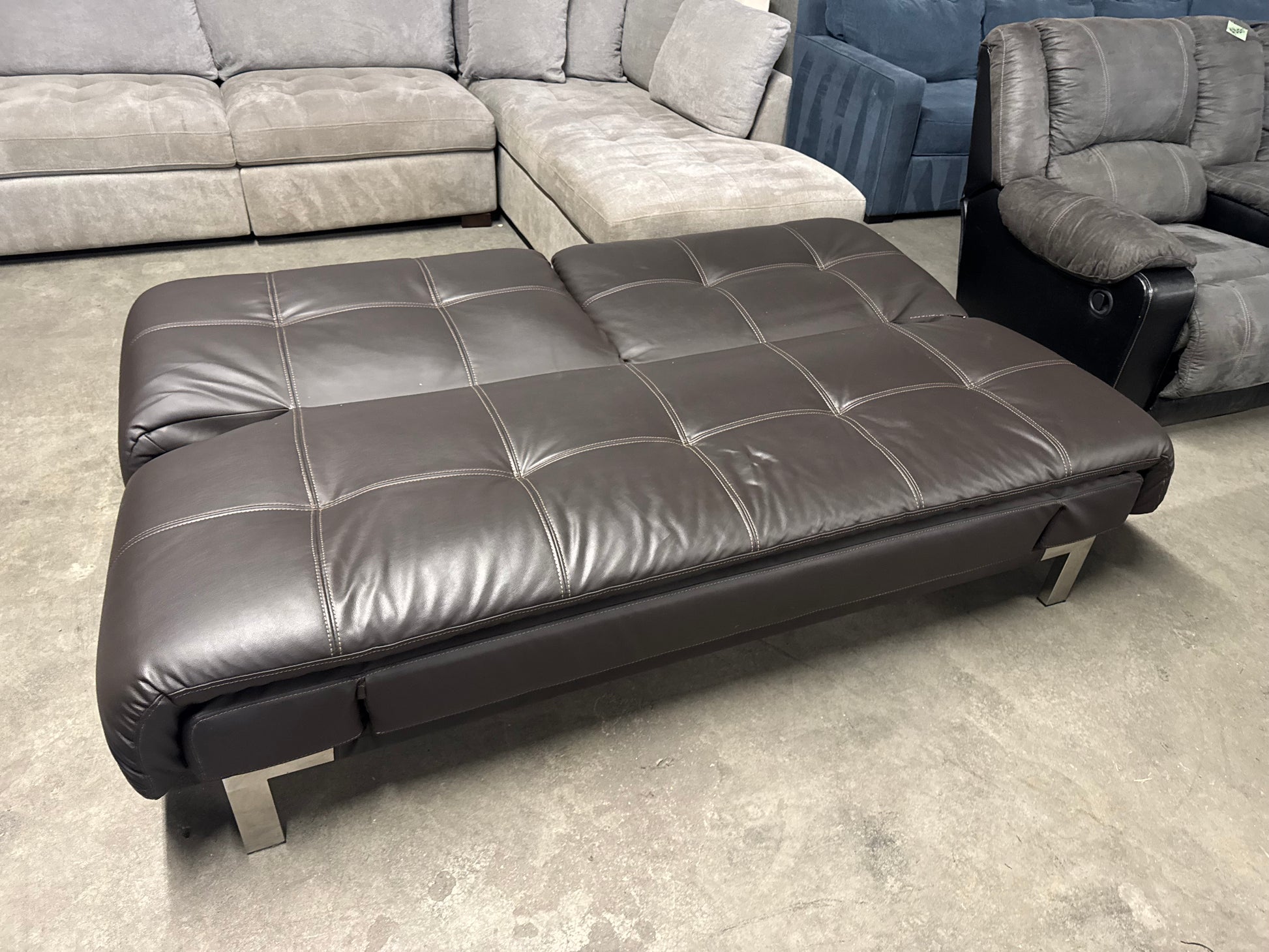 This Verona Relax-A-Lounger Euro Lounger is a sleek, modern sleeper sofa that easily converts into a lounger or sleeper-style position, making it perfect for apartments, offices, guest rooms, or flex spaces. Upholstered in a rich brown faux leather with clean European styling, it offers a minimalist look with surprising comfort. Originally sold at Costco, this is a great option for anyone wanting modern design at a fraction of retail.