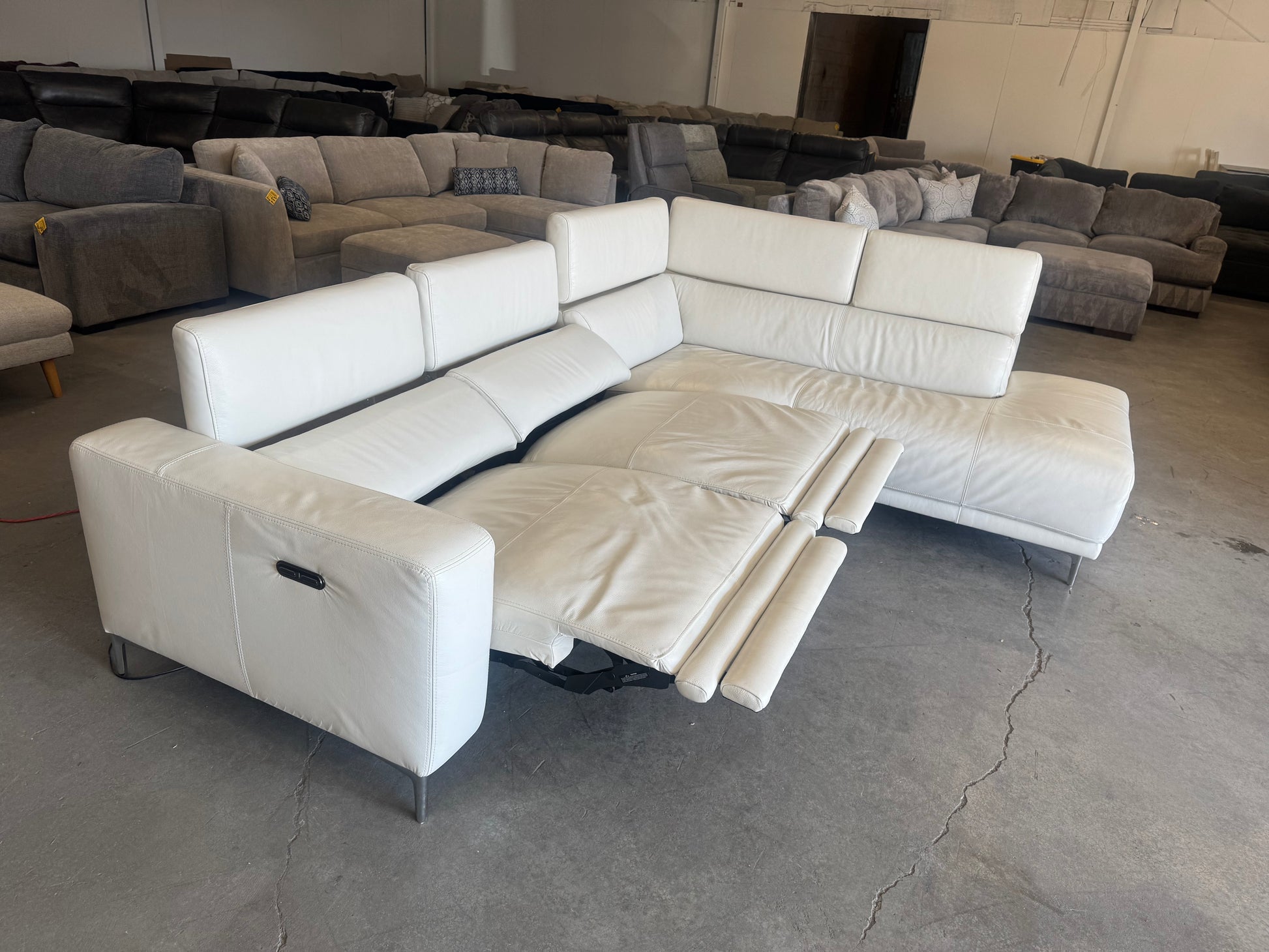 White Leather Power Reclining Sectional with Chaise